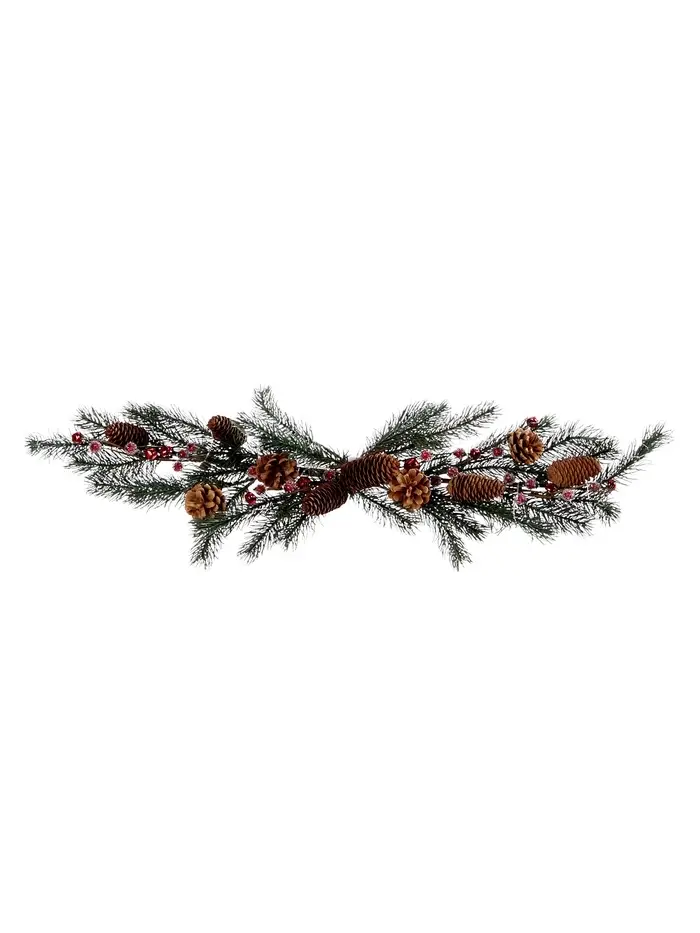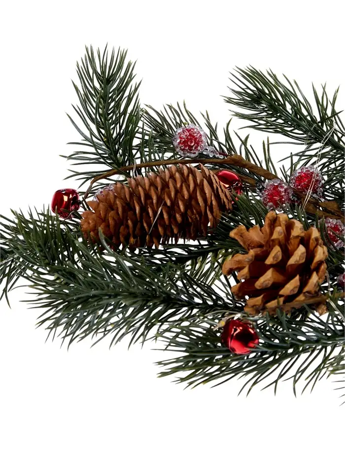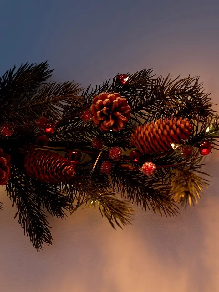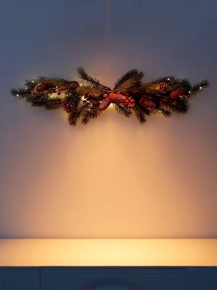 Декор настенный «Еловая ветвь с шишками», 70×27 см, 30LED, от батареек CR2032×2, свечение тёплое белое