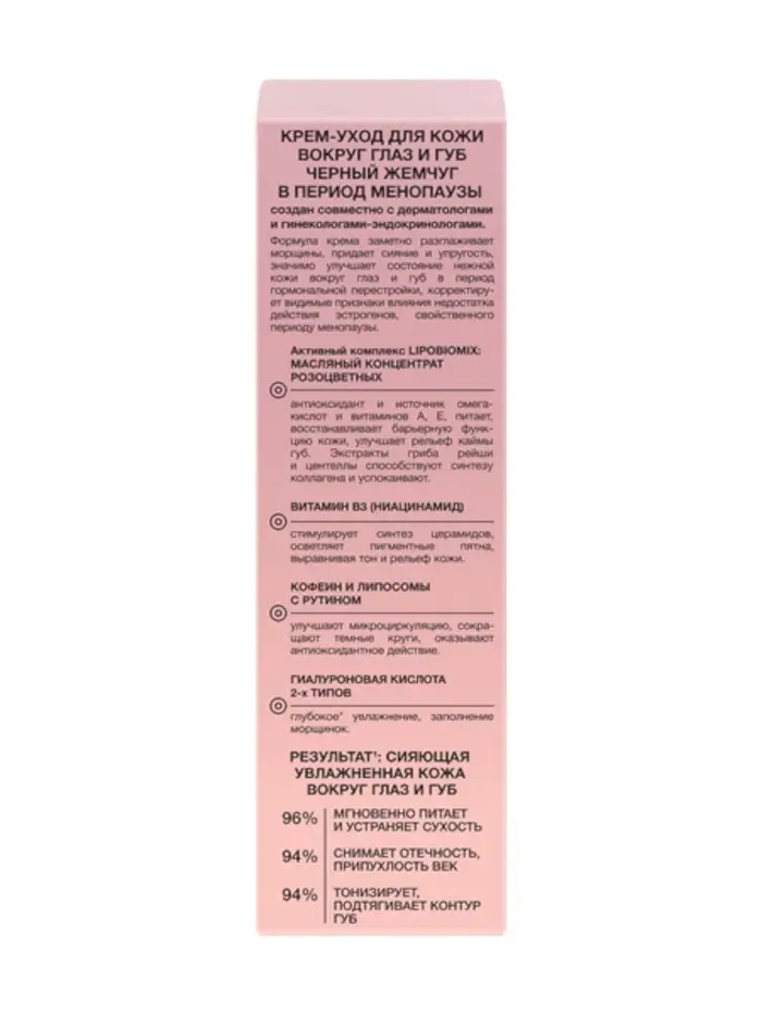 Крем для век и губ с ниацинамидом и гиалуроновой кислотой Черный Жемчуг — это инновационное уходовое средство, созданное специально для женщин в период менопаузы.