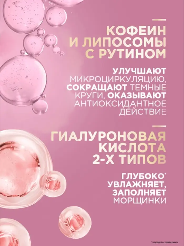 Результат: Сияющая, увлажненная кожа вокруг глаз и губ, заметное разглаживание морщин и улучшенный контур губ.