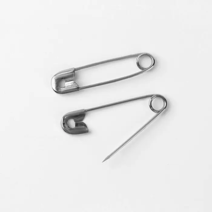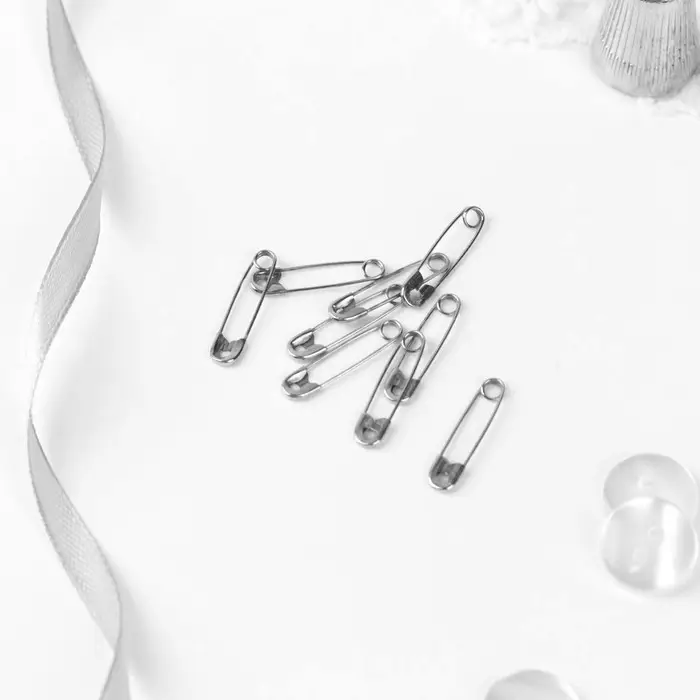 Английская булавка — универсальный помощник в быту, при шитье и рукоделии. Она пригодится для закалывания материала, драпировки ткани, создания украшений. С ней вы можете прикрепить к одежде или домашнему текстилю мягкие аксессуары. Острый край булавки прячется в безопасную петельку, она не уколет и прослужит вам очень долго.
