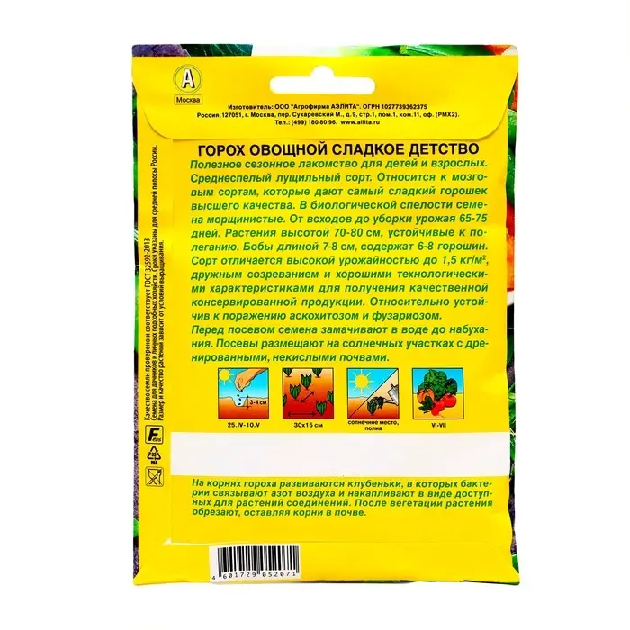 Семена Горох лущильный "Сладкое детство", 25 г