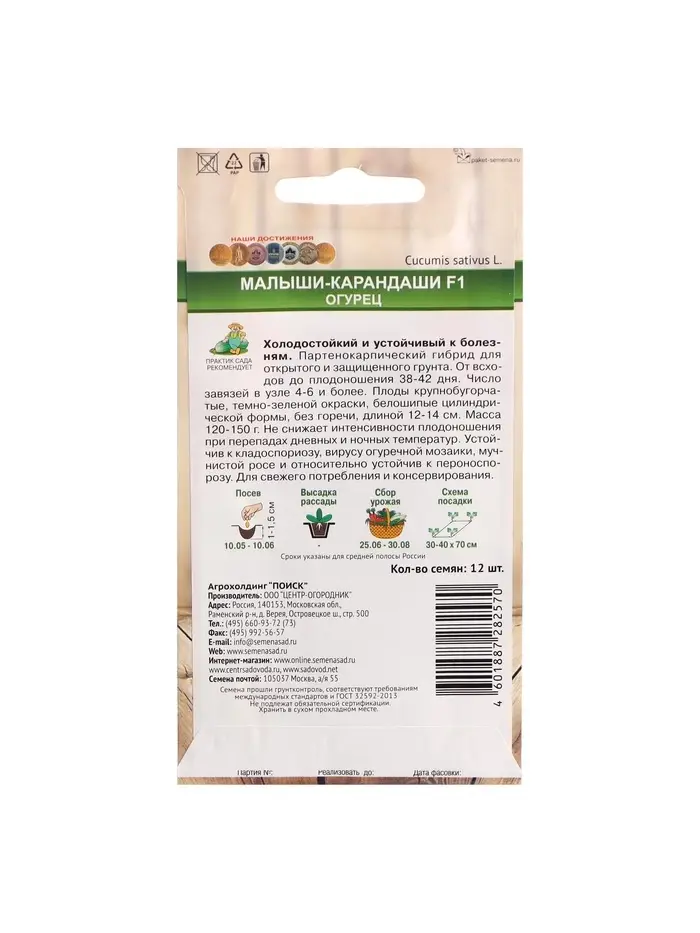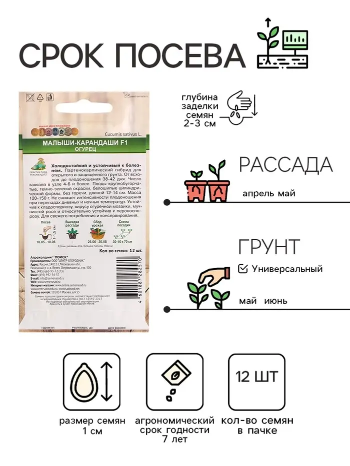 Семена Огурец "Малыши-карандаши", F1, 12 шт