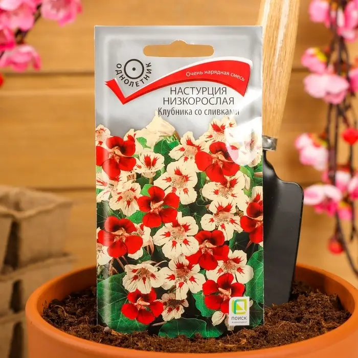 Семена цветов Настурция низкорослая "Клубника со сливками", 1 г