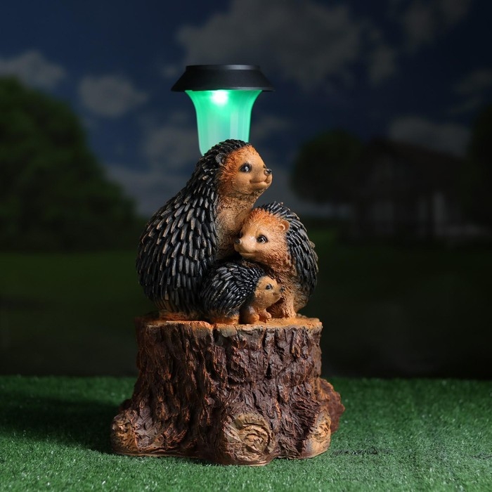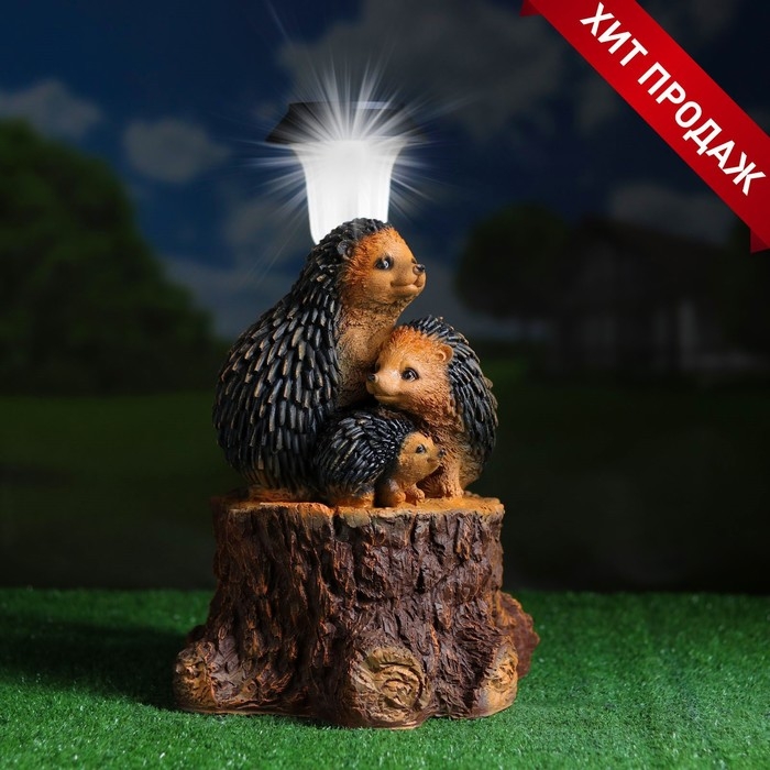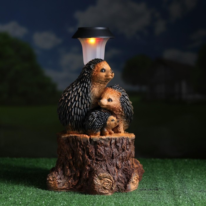 Садовый фонарь "Три ежа на пне с фонарем" 34х26см