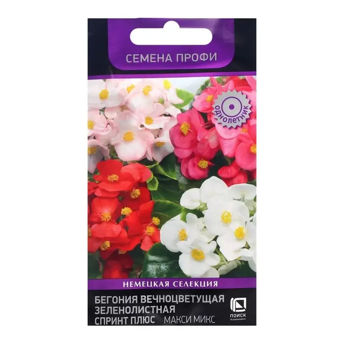 Семена цветов Бегония вечноцветущая зеленолистная "Спринт Плюс Макси", Микс, 10 шт.