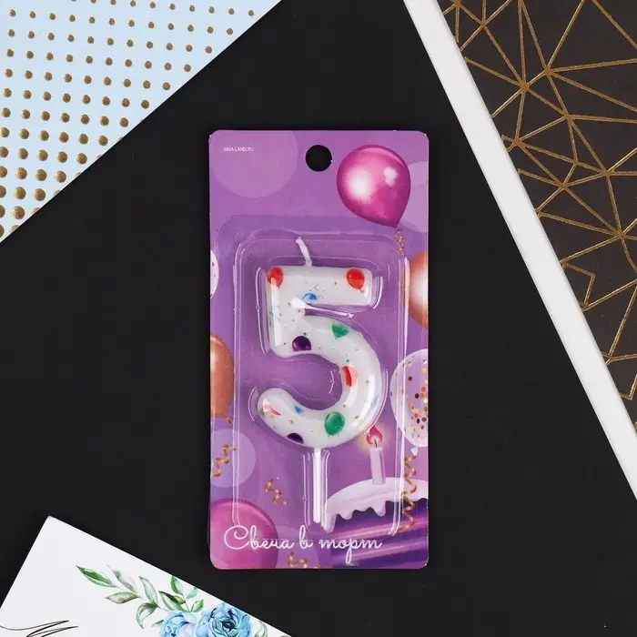 Свеча для торта, цифра «5», 5,5 х 8 см