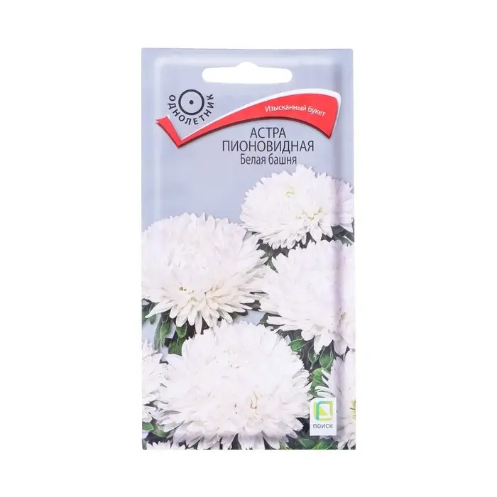 Семена цветов Астра пионовидная "Белая башня" 0,3 г