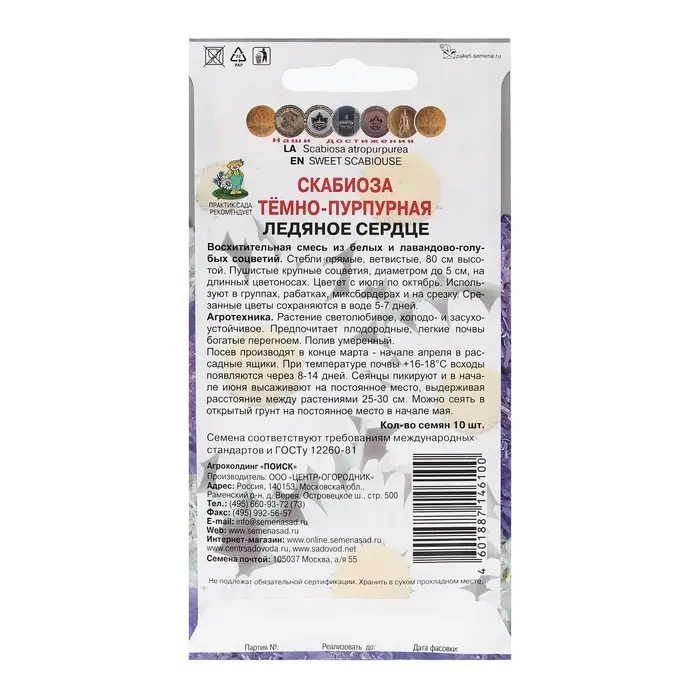 Семена цветов Скабиоза темно-пурпурная "Ледяное сердце" 10 шт