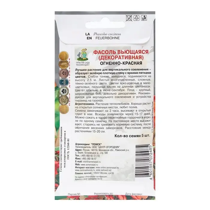 Семена цветов Фасоль вьющаяся "Огненно-красная" 5 шт