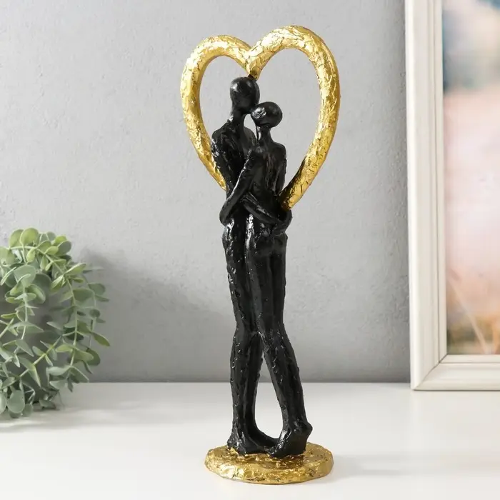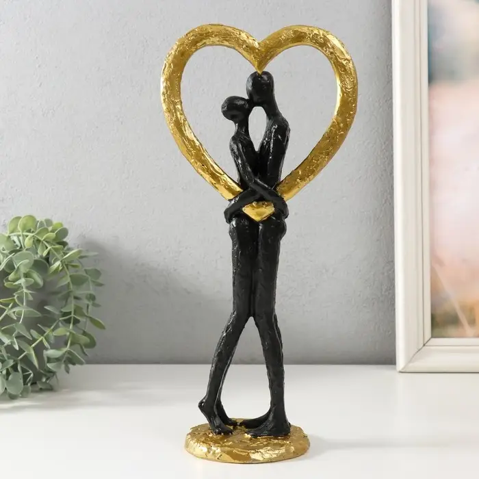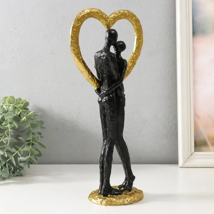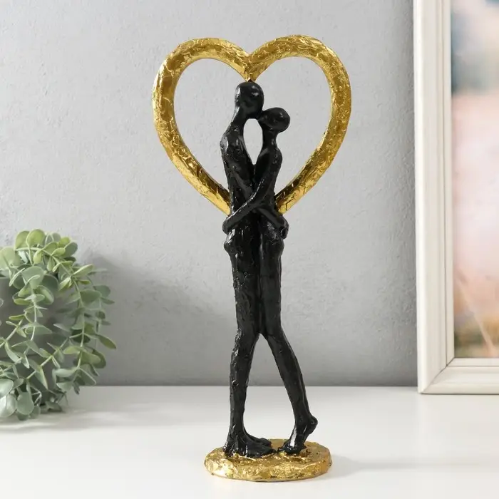 Фигурка полистоун «Абстракция. Поцелуй у сердца», золото с чёрным, 14.5×9×32 см