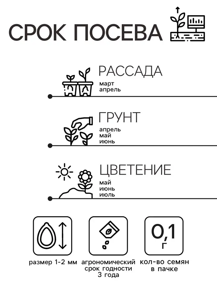 Лучшее растение, высотой 10 см, для создания цветущих ковров. Стелющиеся побеги образуют плотные ковры. Большие сине-фиолетовые, лиловые, пурпурные цветки собраны в кисти. Цветет на второй год с мая по июнь. После цветения желательно произвести обрезку цветоносов, чтобы ограничить рост и вызвать вторичное цветение осенью. Используется для каменистых горок, бордюров и переднего плана рабаток.Агротехника. Растение зимостойкое. Предпочитает рыхлые, достаточно увлажненные почвы с хорошим дренажом и солнечное место. Размножают семенами, черенками весной. Посев семян производят весной на разводочные гряды. При температуре почвы +20°C всходы появляются через 14-20 дней. Молодые растения высаживают на постоянное место, выдерживая расстояние между растениями 10-15 см.Семена соответствуют требованиям международных стандартов и ГОСТу РФ 12420-81