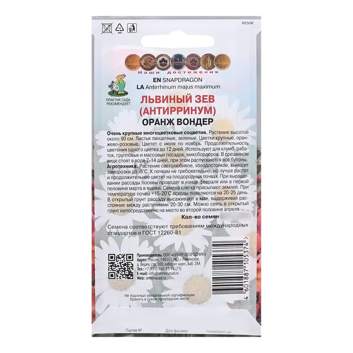 Семена цветов Львиный зев "Оранж Вондер", 0,1гр.