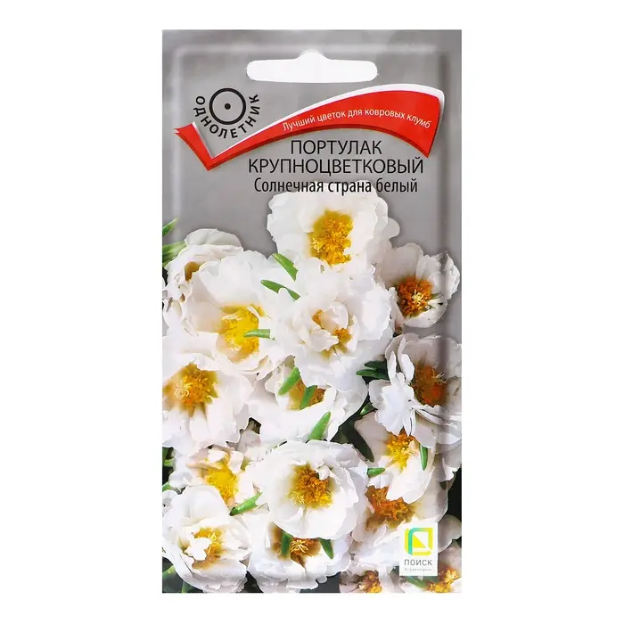 Великолепный цветочный ковёр. Растение со стелющимися сочными светло-зелёными стеблями образует кустик высотой 10 см. Чисто-белые, похожие на розочки, махровые цветы диаметром 3-4 см открыты только в ясную погоду. Цветёт с июня до заморозков.Агротехника. Растение тепло- и светолюбивое, засухоустойчивое. Хорошо растёт на любых почвах. Посев производят в марте-апреле в рассадные ящики. Семена не заделывают, лишь слегка вдавливают в почву. Посадочную ёмкость накрывают стеклом и ставят в освещённое место. При температуре почвы +18-20°С всходы появляются через 10-15 дней. На постоянное место рассаду высаживают, когда минует угроза весенних заморозков, выдерживая расстояние между растениями 10-20 см. Растение хорошо переносит пересадку. Семена соответствуют требованиям международных стандартов и ГОСТу РФ 12260-81