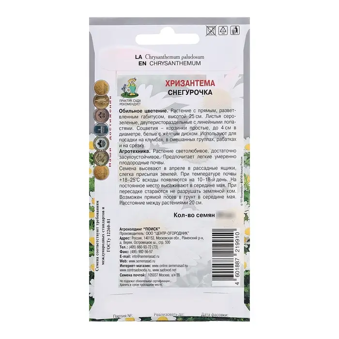 Семена цветов Хризантема "Снегурочка", 30шт