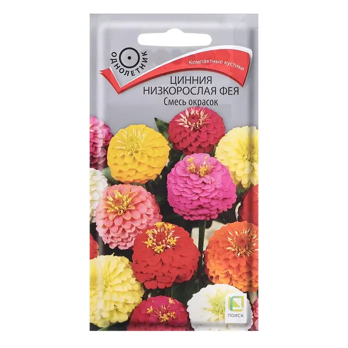 Семена Цветов Цинния низкорослая "Фея" , Смесь окрасок , 0 ,1 г