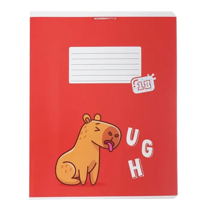 Тетрадь 18 листов в клетку "Капибара", обложка мелованный картон, ВД-лак, блок 60 г/м2, 5 видов, МИКС