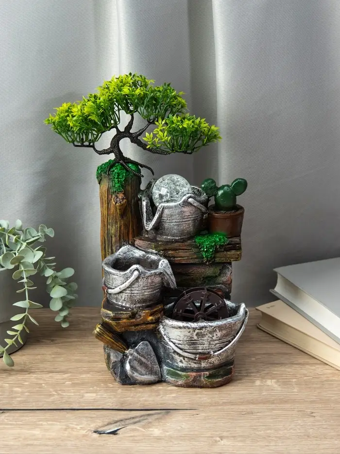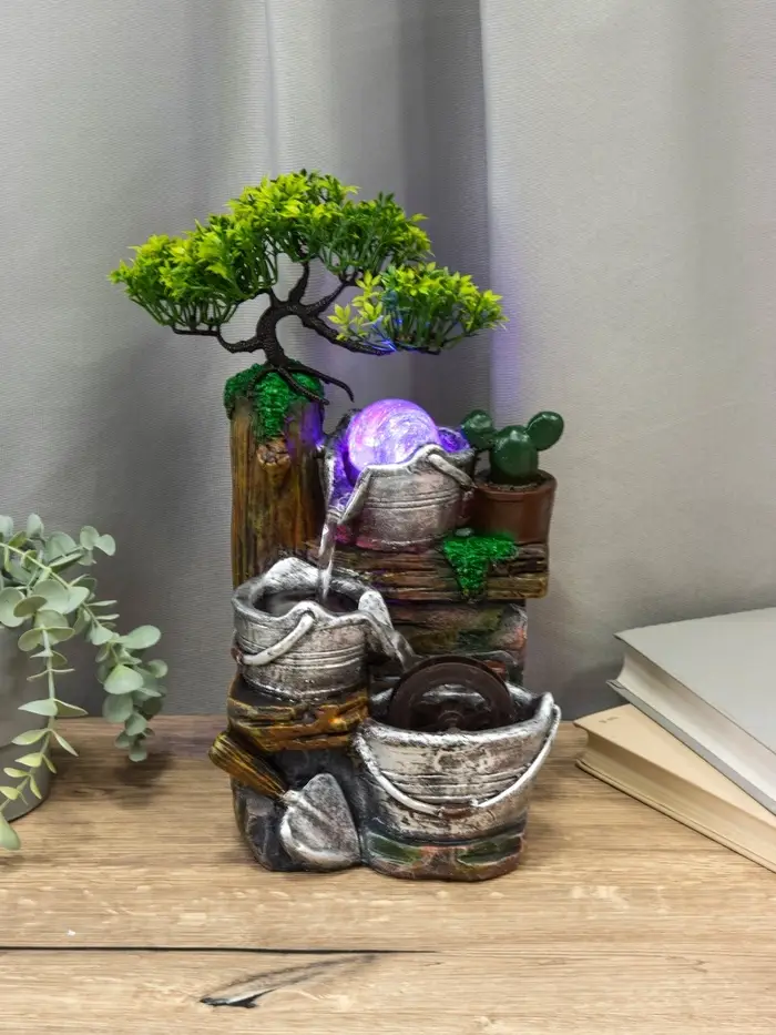 Фонтан "Ведерки под деревом" 32х15х13 см (с подсветкой)