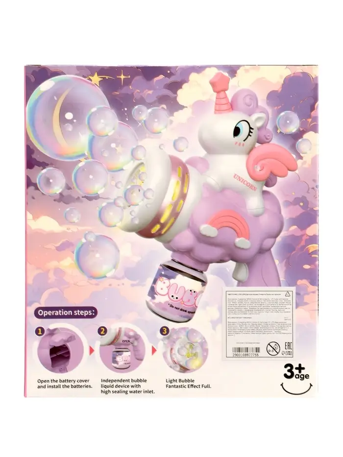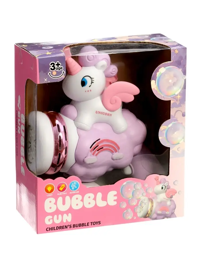 Генератор мыльных пузырей "Единорог на облачке", световые эффекты, работает от батареек