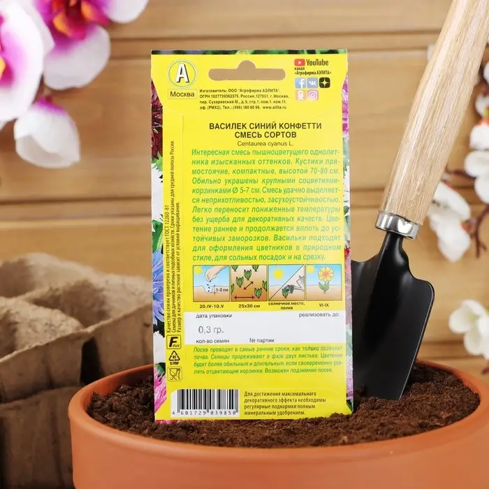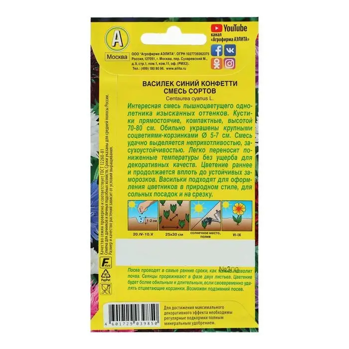 Василёк «Конфетти» представляет собой однолетнее холодостойкое обильноцветущее растение с ажурными соцветиями-корзинками различных окрасок. Растения неприхотливые, засухоустойчивые, светолюбивые, легко переносят пониженную температуру. Хорошо растут в цветниках, бордюрах, контейнерах и балконных ящиках, подходят для срезки.