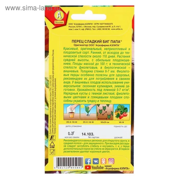 Семена Перец сладкий " Халиф F1", ц/п, 5 шт.
