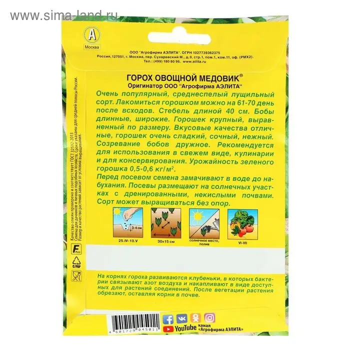 Семена Горох "Медовик", лущильный, 25 г