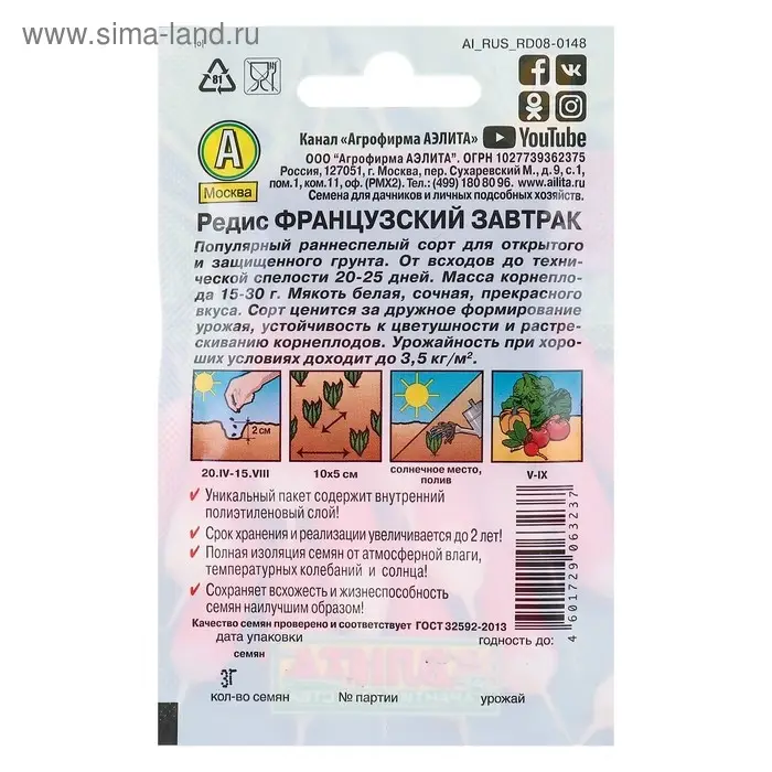 Семена Редис "Французский завтрак" "Лидер", 2 г ,