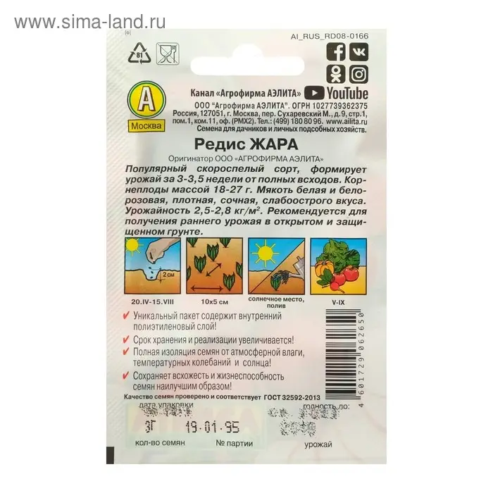 Семена Редис "16 дней",набор 5 шт