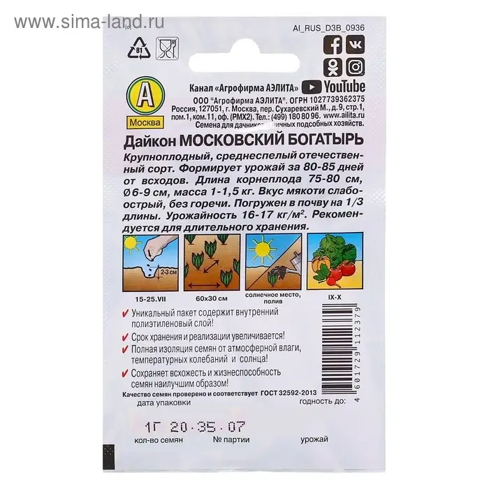 Семена Дайкон "Московский богатырь" "Лидер", 1 г ,