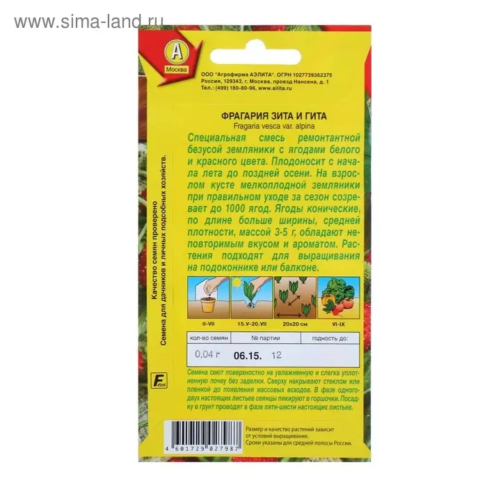 Семена Земляника "Зита и Гита", смесь, 0,04 г