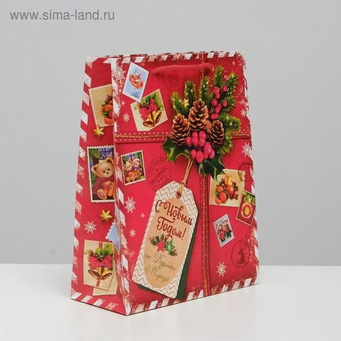 Пакет подарочный новогодний ламинированный «Подарок от Деда Мороза», MS 18 х 23 х 11.5 см