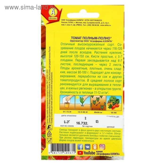 Семена Томат "Полным-полно" плоскоокруглый, красный, среднеспелый,индетерминантный 0,2 г