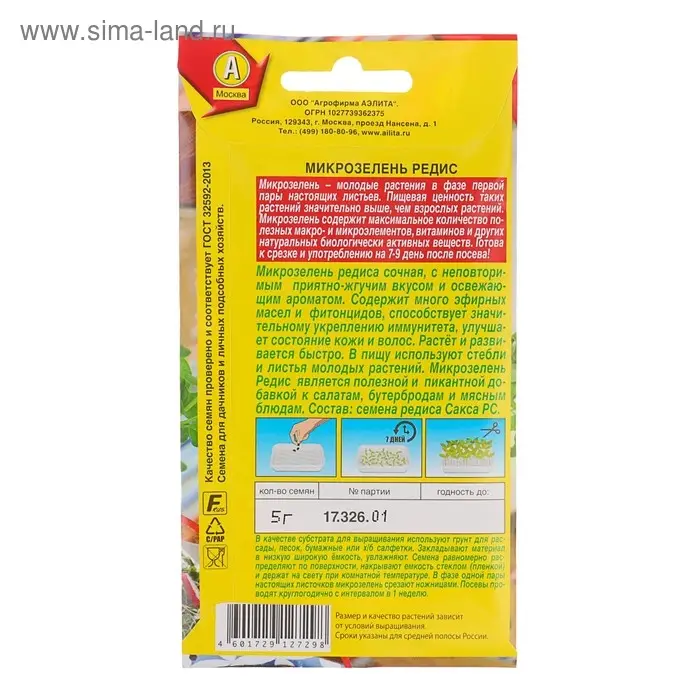 Агрофирма АЭЛИТА | 1 шт. |