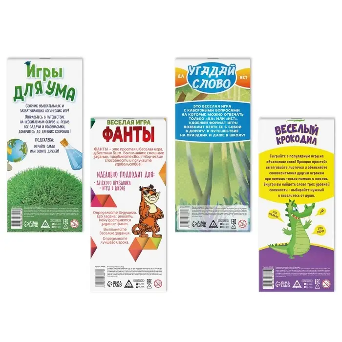 Это компактные игры с разрезными страничками, которые можно взять с собой в поездку. Вас ждут увлекательные истории, игры в ассоциации, на угадывание и объяснение слов, логические задачки и не только.