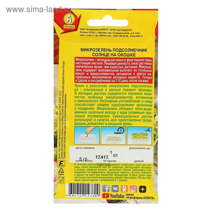 Семена Микрозелень "Подсолнечник" Солнце на окошке, 5 г