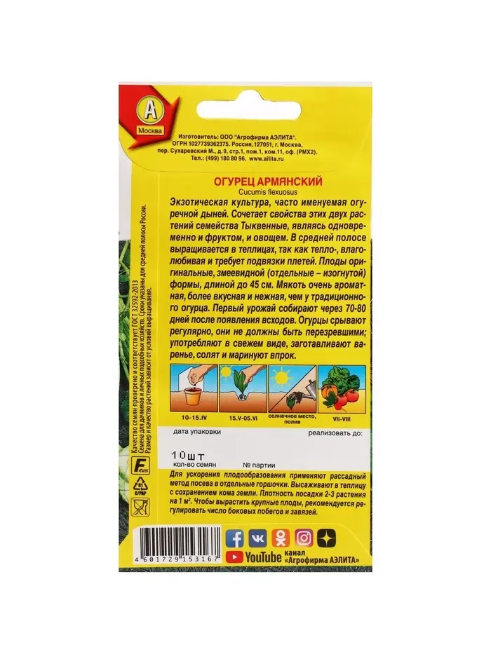 Семена огурца "Армянский", 10 шт.