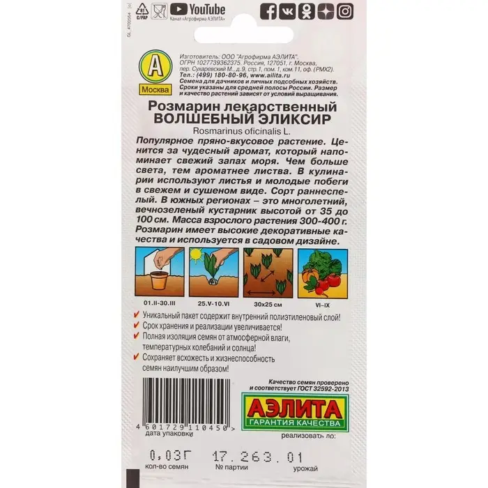 Семена Розмарин "Волшебный эликсир", ц/п, 20 шт.