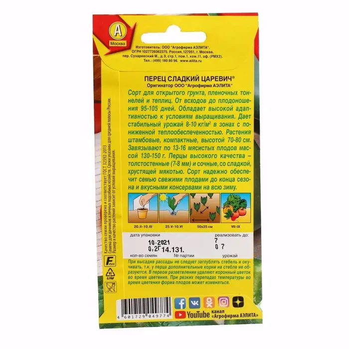 Семена Перец сладкий " Халиф F1", ц/п, 5 шт.