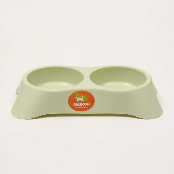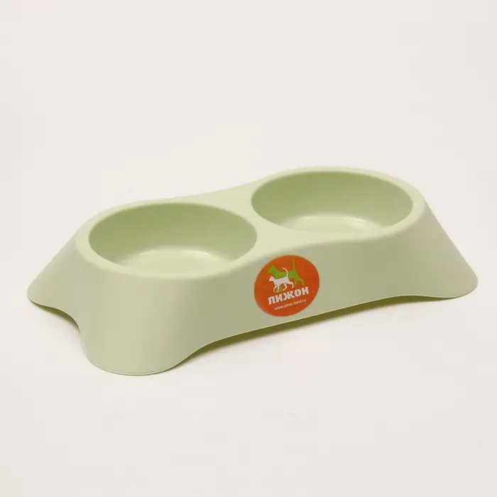 Миска двойная пластиковая 2 х 160 мл, 23 х 13 х 4 см, зелёная