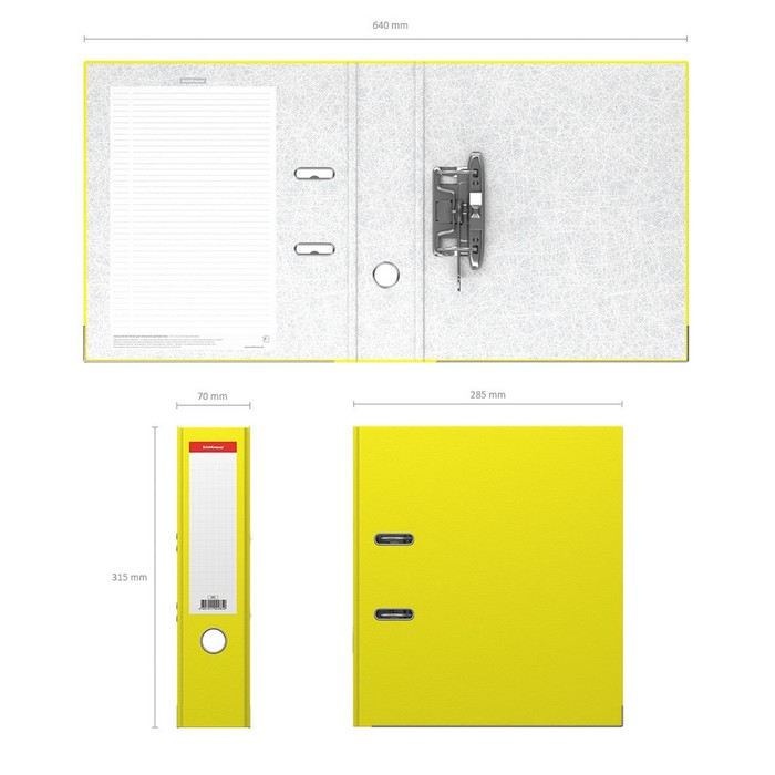 Папка-регистратор А4, 70 мм, ErichKrause, Standard, бумвинил, с этикеткой на корешке, нижний металлический кант, жёлтая