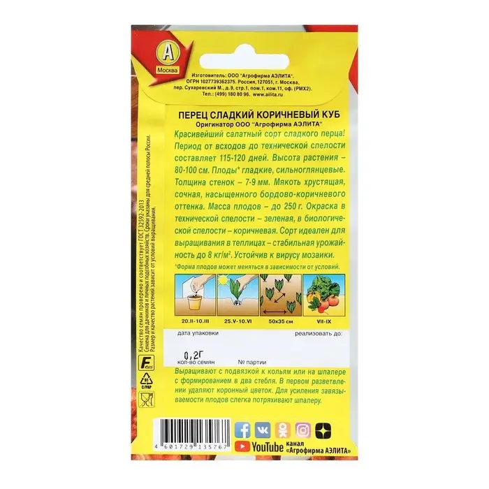 Семена Перец сладкий "Коричневый куб", 20 шт