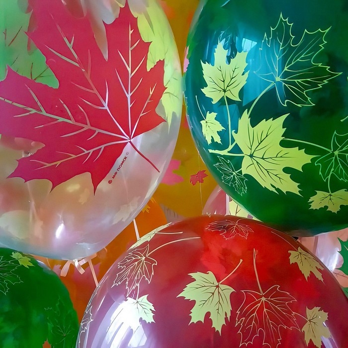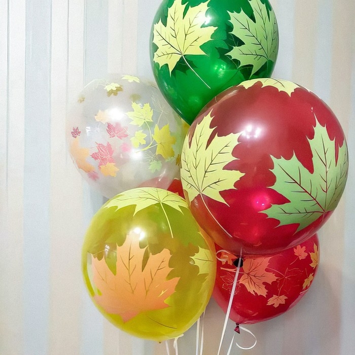 Шар латексный 12" «Осенние листья», декоратор, шелкография, 5-сторонний, набор 25 шт., МИКС