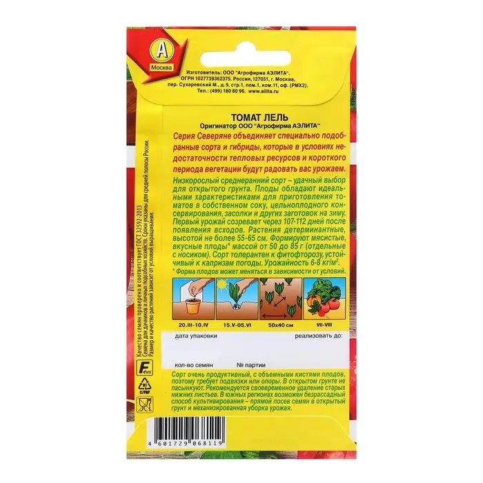 Семена Томат Лель Ор. А Р Северяне Ц/П 0,2г