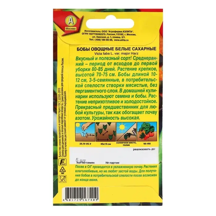 Семена Бобы овощные "Белые сахарные", ц/п, 5 шт