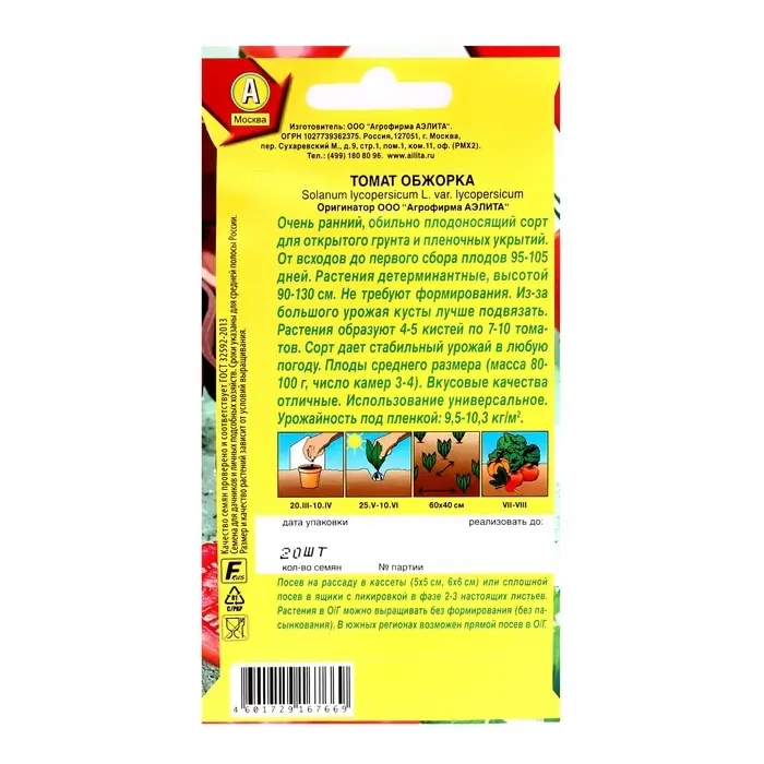 Семена томатов «Обжорка» — это ваш путь к вкусному и ароматному урожаю. Они отлично подходят для начинающих и опытных садоводов, которые ищут надежный сорт для открытого грунта с ранним созреванием.