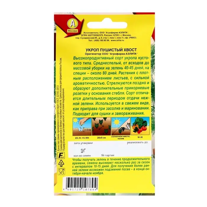 Начните свой путь садовода с укропа "Пушистый хвост". Он станет не только полезным, но и стильным украшением вашего кухонного сада, добавляя зелень и изысканность в каждый уголок вашего пространства. Выполняйте посадку с удобством и уверенностью — идеальный выбор для каждого!