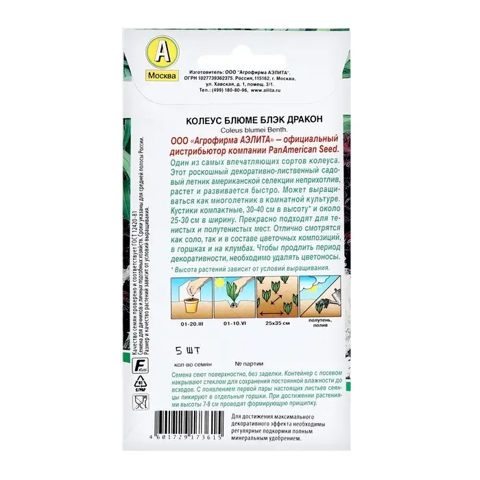 Семена цветов Колеус "Черный дракон" F1, О, 10 шт