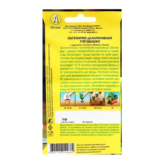Эти декоративные семена подходят для cоздания неповторимого дизайна сада. Ожидайте обильного и продолжительного цветения, украсившего ваш участок необычными плодами лагенарии. “Гнездышко” привнесет в ваш сад не только красоту, но и живую энергетику, наполняя его природной гармонией.