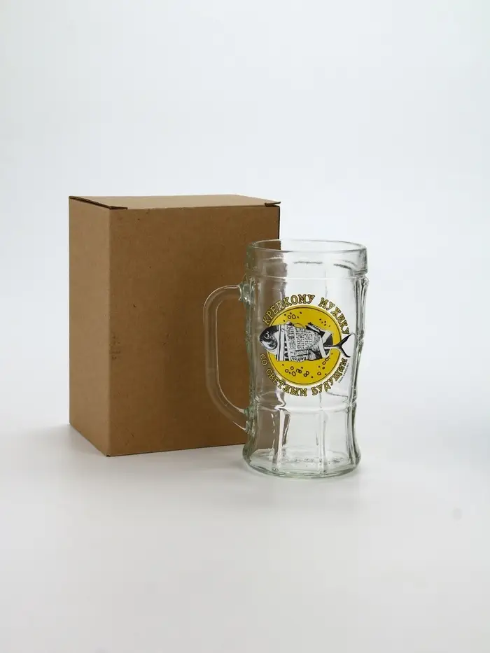 Кружка пивная стеклянная «Крепкому мужику, со светлым будущим», 500 мл