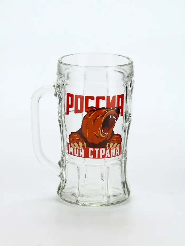 Кружка пивная стеклянная «Россия, моя страна», 500 мл