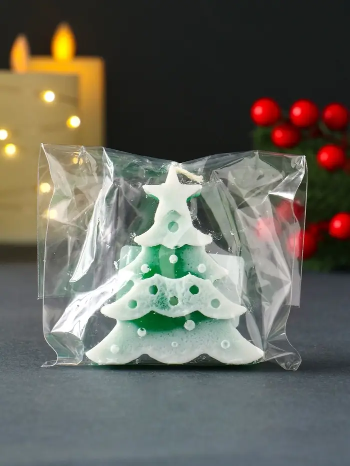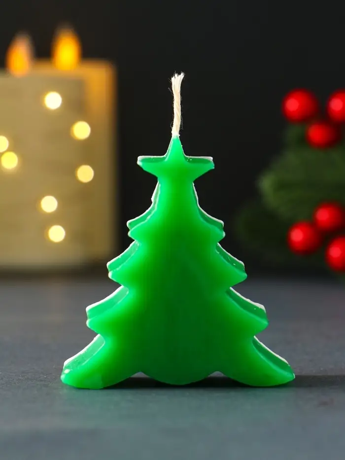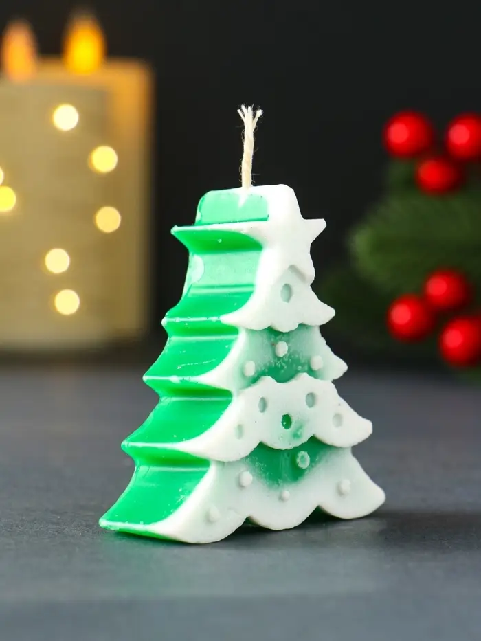 Свеча новогодняя "Ёлочка с огоньками" 60х70 мм, зелёный